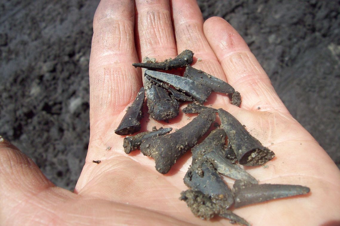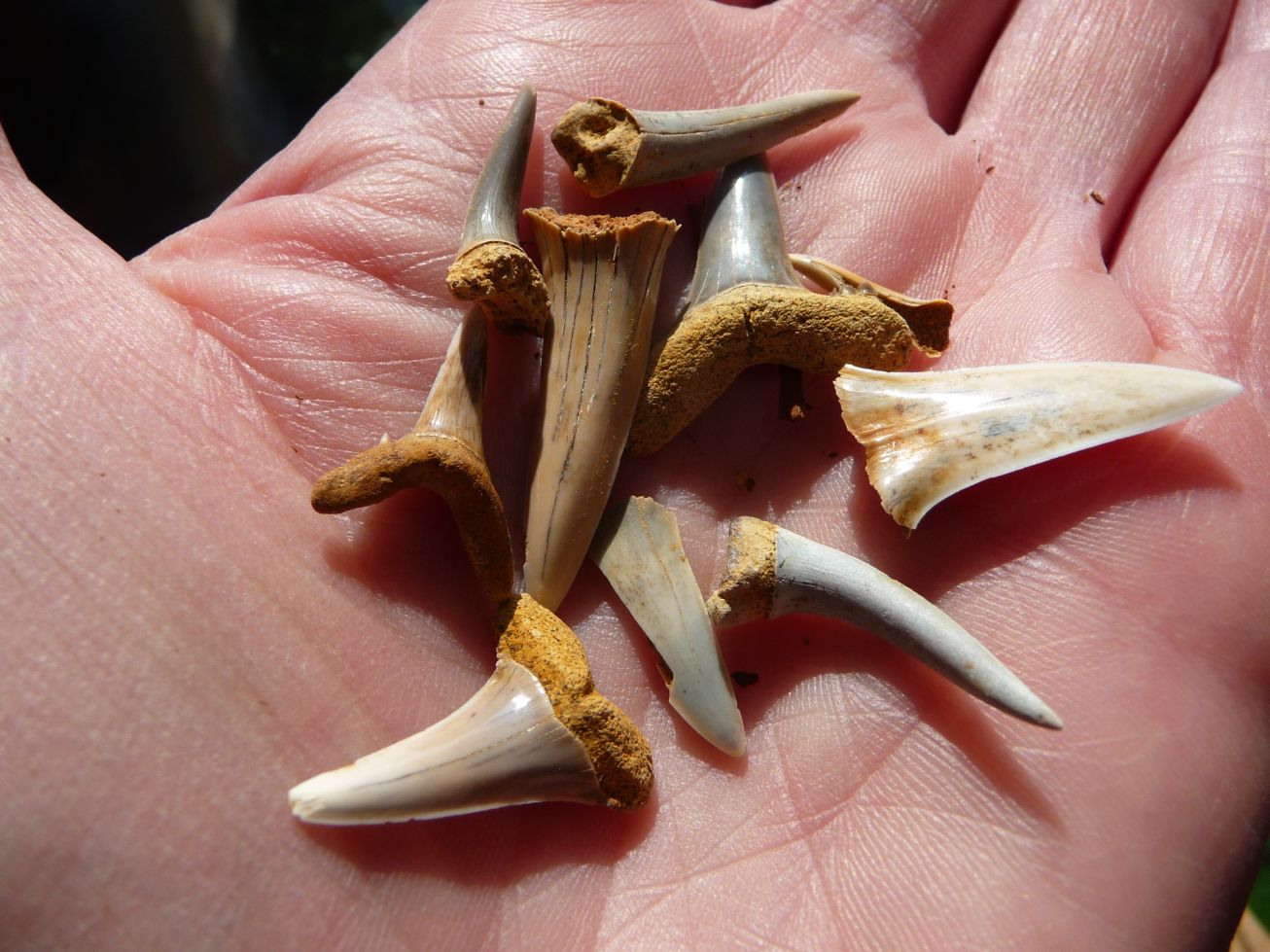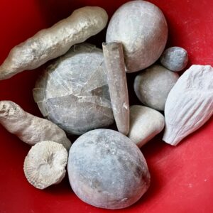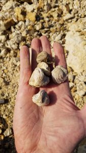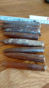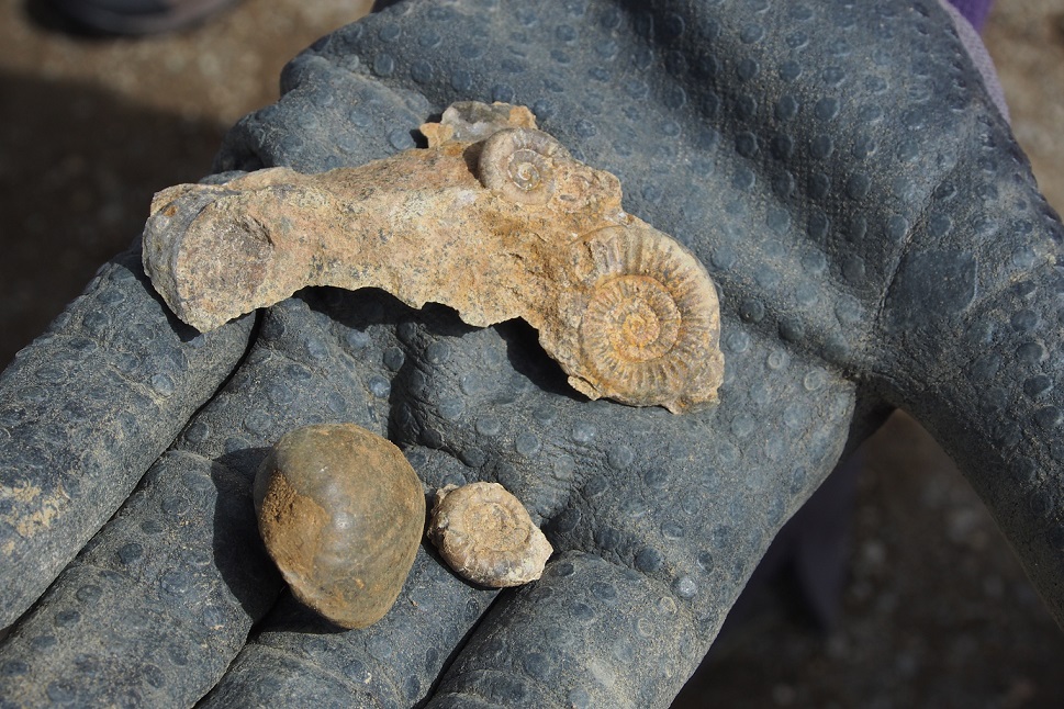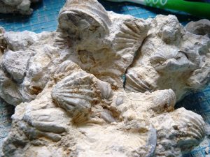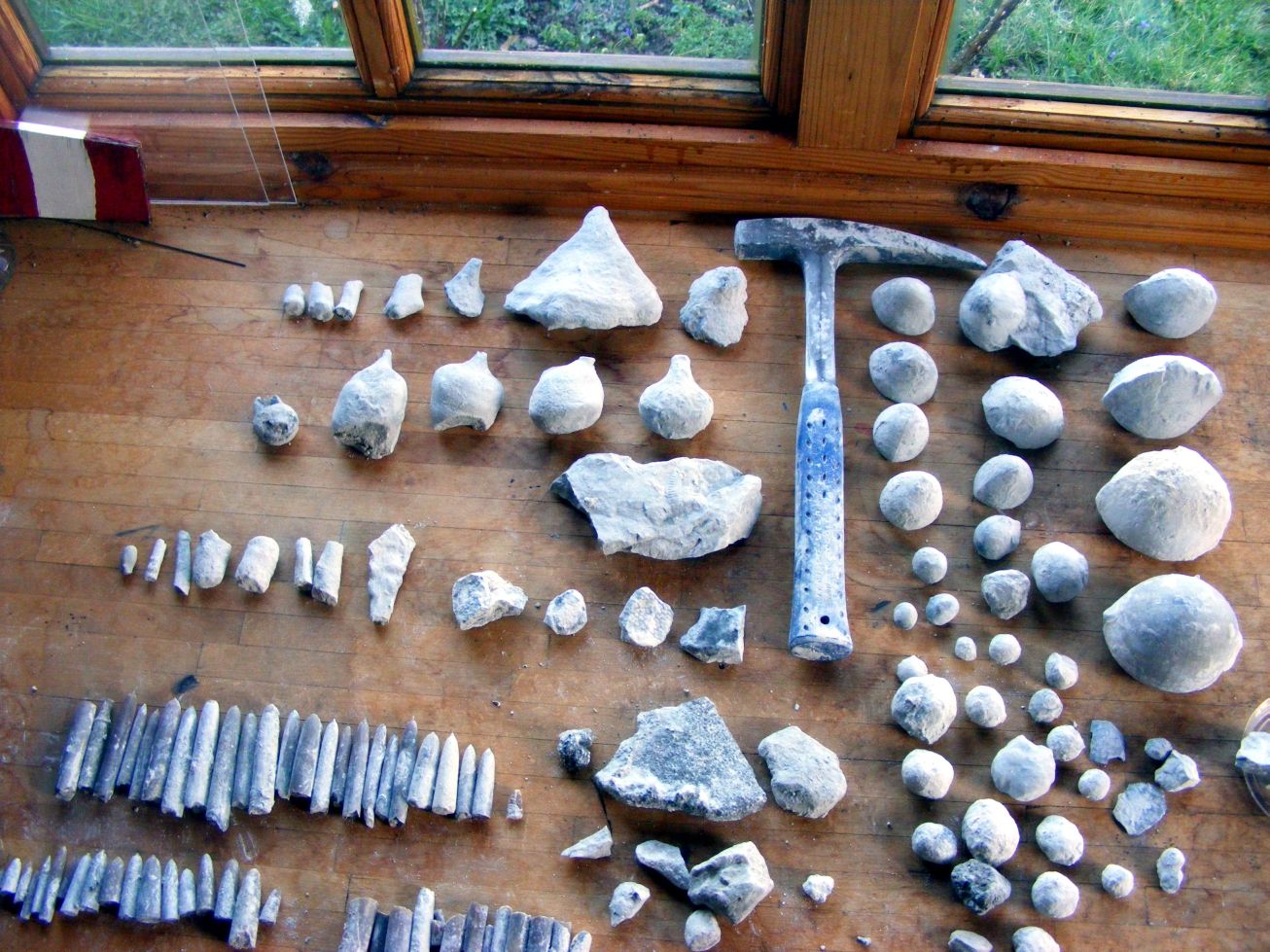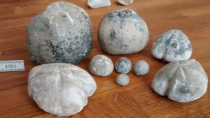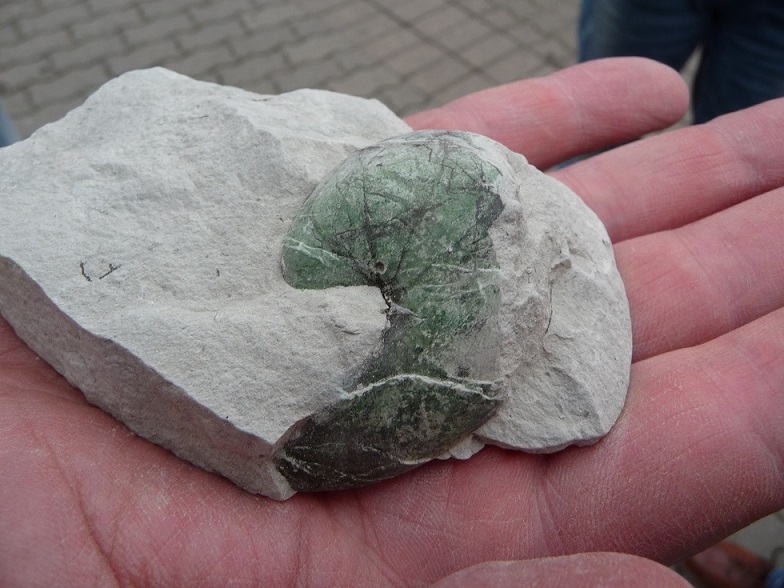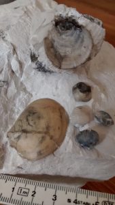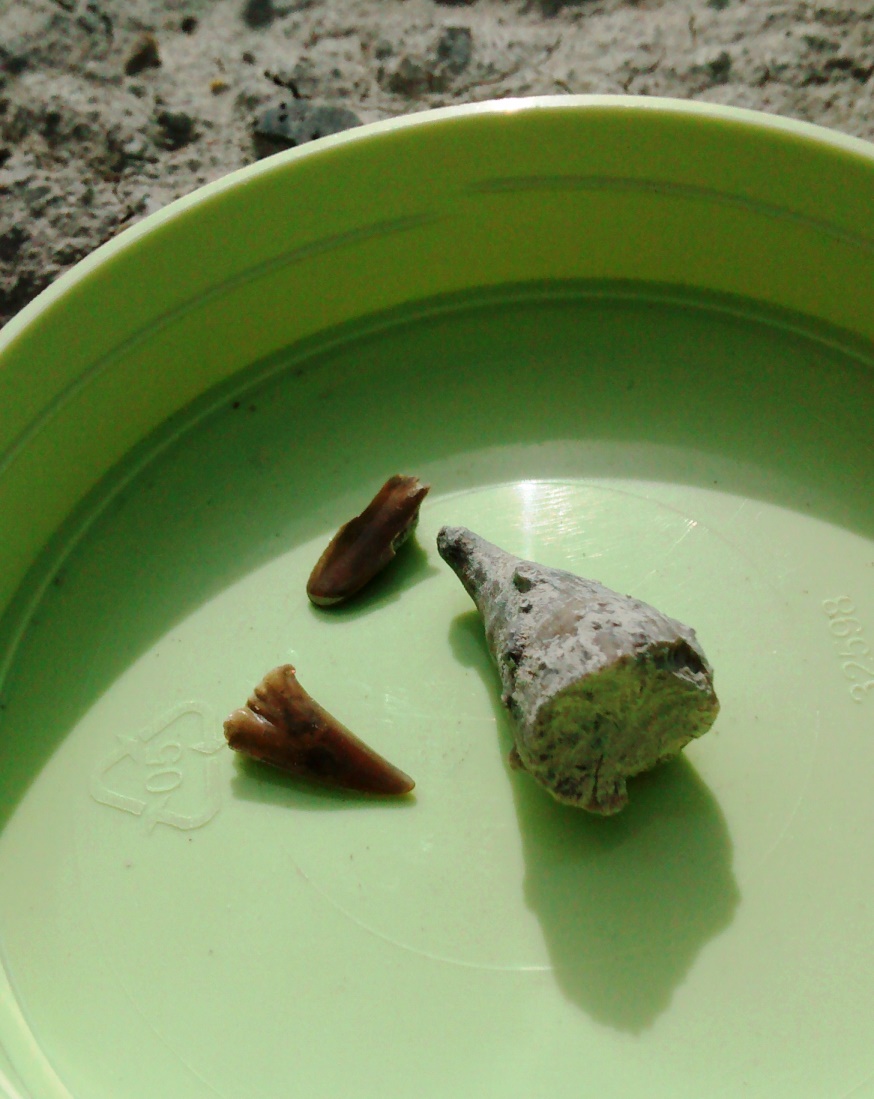 An diesem Samstag war unsere Gruppe klein. Trotz traumhaften Wetters fanden sich nur 6 Mitglieder zum Suchen ein. Dabei wurde es ein sehr erfolgreicher Tag! Jeder konnte mit etwas Besonderem aufwarten: mit einem Sonnenschwamm, einem Haizahn, einer (Bathro?)tomaria nebst riesigem intakten Echinocorys, gleich 4 Einzelkorallen, einem Beutelchen voll süßer Galeolas, Teilen eines heteromorphen Ammoniten…. sowie mit vielen sonstigen Seeigeln. Abgeschlossen wurde dieser schöne Tag mit dem obligatorischen gemeinsamen Eisbecher im Cafe Europa.