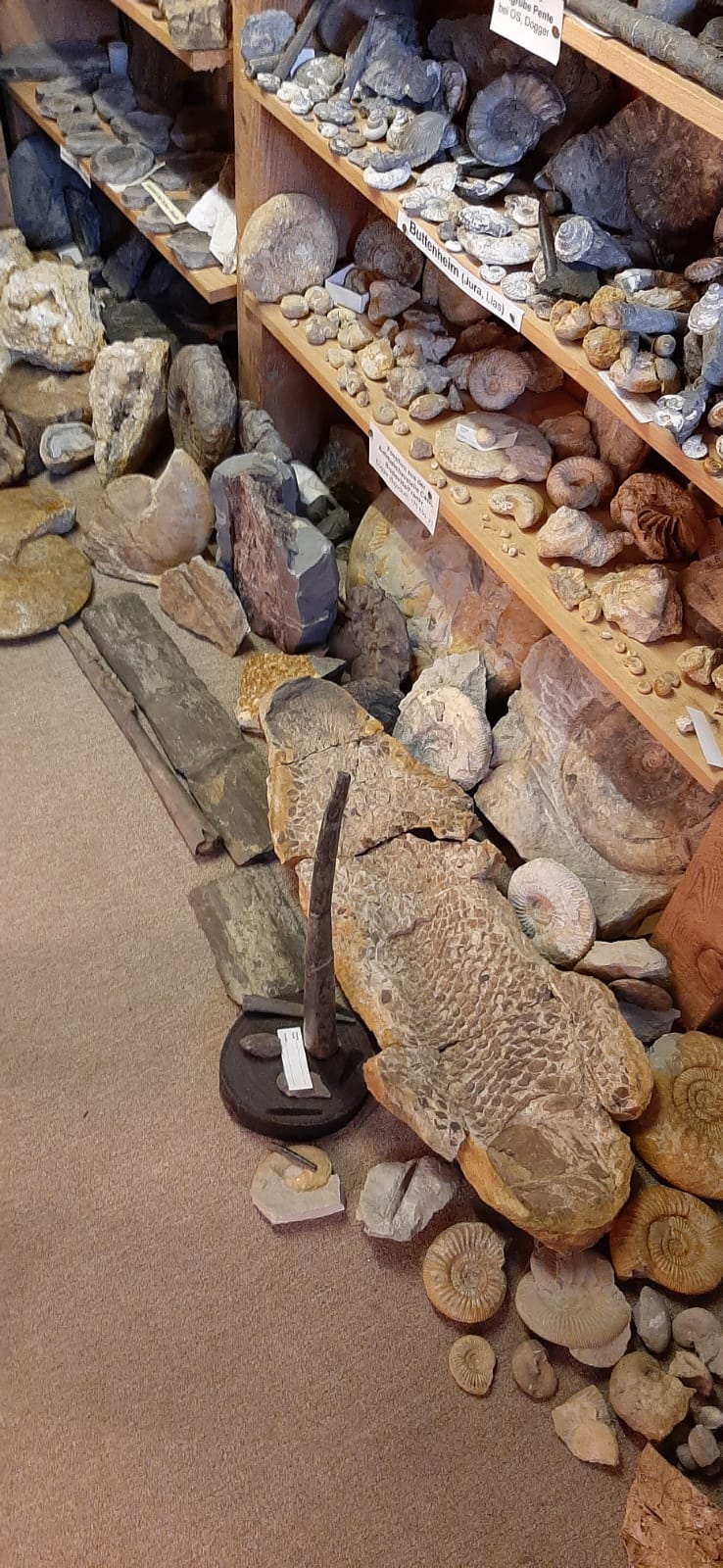 Neben den altbekannten Fundstellen (Endress Gräfenberg, Tongrube Holzbachacker Buttenheim, Steinbruch Schwarzmann Pilgerndorf und Fossiliengrube Mistelgau) ging es für den größten Teil der Gruppe am Freitag ins Altmühltal zum Dinosauriermuseum in Denkendorf. Dieses privat geführte Museum überraschte nicht nur durch eine unglaubliche Sammlung von Präparaten unterschiedlichster Saurier und dem 2010 gefundenen Archaeopteryx Nr. 12, sondern auch durch die teils atemberaubenden Stücke der Sonderausstellung „Ammonite Masterpieces“.