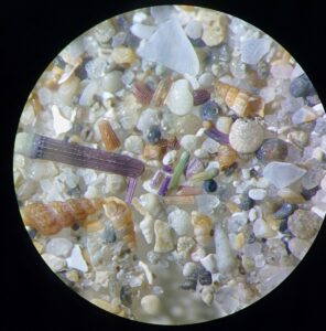 Foraminiferen von weiß über alle Grautöne bis schwarz,